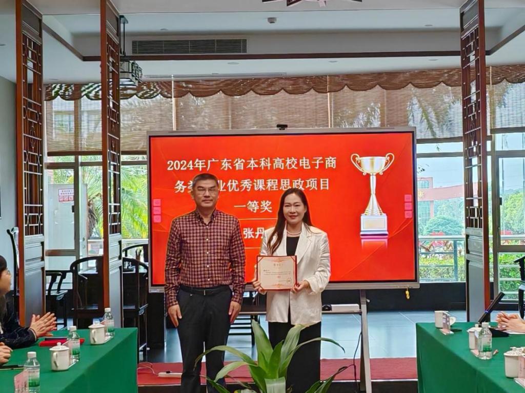 2025年3月13日,广东省本科高校电子商务类专业教学指导委员会主任委员邓顺国教授、省电商教指委副主任委员秘书长易法敏教授、省电商教指委副主任委员贺敏伟教授、省电商教指委副主任委员黄丽娟教授、省电商教指委副主任委员王和勇教授、广州经纬国际控股集团有限公司董事长李育海等专家莅临我校,为在2024年电子商务类优秀思政课程评选中获奖的七位教师举行颁奖仪式。广州华商学院党委书记陈玉欢、数字经贸学院院长李广明、副院长李伟、院长助理赵慧琴等领导出席了本次仪式。