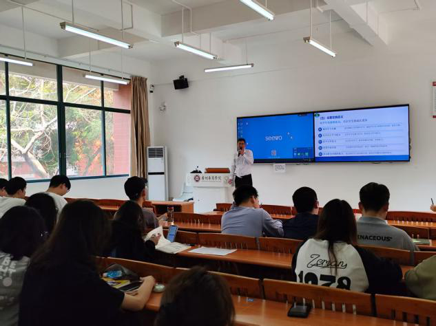 2025年3月25日下午,广州华商学院外国语学院成功举办“善学”讲坛第八期活动。本期讲坛的特邀嘉宾是广州市增城区新塘镇沙埔中学副校长、初中高级教师曹雪勇,本期讲坛的主题是“教学与创新”,主要面向有志于将来成为人民教师的外国语学院的学生开展。