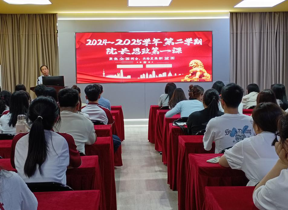 姚院长为学生们解读了全国两会中关于经济增长、科技创新、乡村振兴等热点议题,强调会计人应紧跟国家发展步伐,以专业力量服务国家战略。姚院长指出,会计人作为经济发展的重要参与者,需在新质生产力与智能会计领域发挥关键作用。他勉励学生们掌握数据建模、AI审计等技能,适应数字化转型需求,同时坚守诚信底线,以真实数据为政府决策提供支持。他表示,会计人应从“记账员”向“战略决策支持者”转变,运用财务数据分析助力企业战略制定,促进区域协调发展。