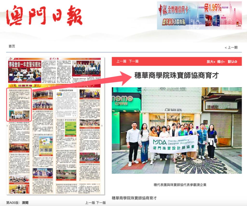 (广州华商学院珠宝学院教师交流团与澳门珠宝设计协会的交流活动被《澳门日报》报道)