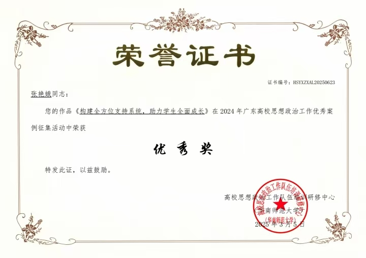 近日,广州华商学院外国语学院学工队伍在2024年广东高校思政工作优秀成果评选中斩获多项荣誉,充分展现了学院队伍建设的专业化水平与工作创新能力,标志着外国语学院在思政教育领域的探索与实践取得了成效。