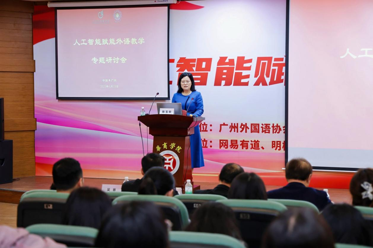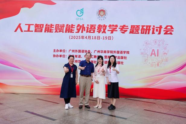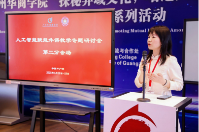 2025年4月18-19日,由广州外国语协会和广州华商学院外国语学院主办,网易有道、明校汇教育、暨南大学出版社、华东师范大学出版社、华语教学出版社协办的“人工智能赋能外语教学专题研讨会”在广州华商学院广州校区举行,来自澳门大学、北京航空航天大学、北京外国语大学、暨南大学、广东外语外贸大学、华南师范大学、东北农业大学、西安石油大学、云南民族大学、北京好策科技有限公司等40余所高校、教育机构的专家、学者近300人出席了会议。