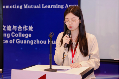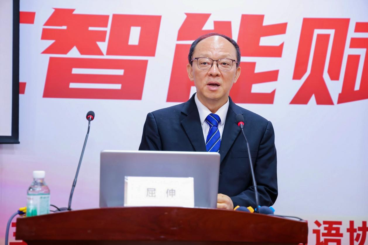 广东省翻译协会副会长屈伸译审发言。他指出,教师与学生在使用AI技术时应该用之有道,不要盲目使用或过度依赖,同时应该以包容、开放的心态接受AI在各方面带来的重塑。本次研讨会彰显了广州华商学院外国语学院紧跟时代,守正创新的责任与担当。他希望,通过本次研讨会,与会嘉宾能找到使用人工智能的度量衡。最后,他预祝本次研讨会圆满成功。