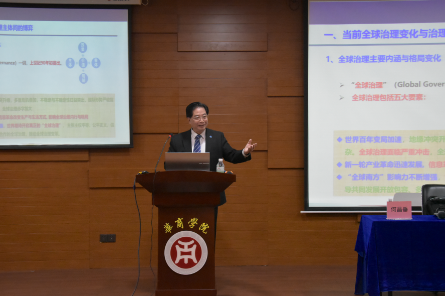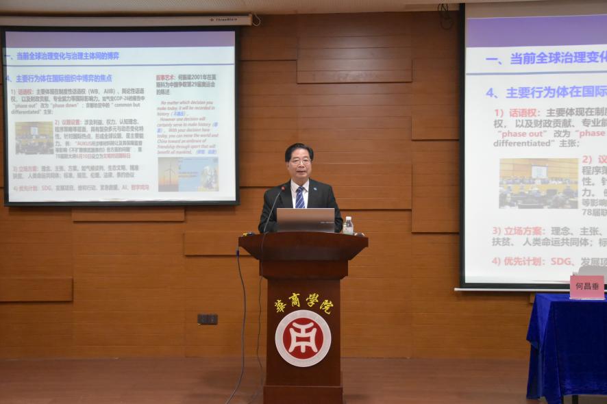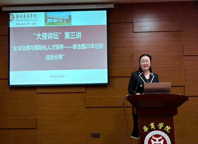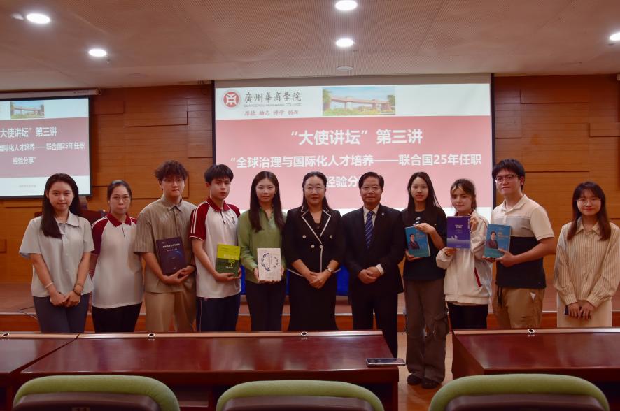 为培养具有国际视野和全球竞争力的青年才俊,为国际组织和参与全球治理做好人才储备,广州华商学院“大使讲坛”第三讲于2025年4月15日在中央图书馆报告厅举行。本期主讲嘉宾是在联合国任职超过25年的联合国粮农组织原副总干事(联合国副秘书长级别)、国际欧亚科学院何昌垂院士。国际学院回雁雁院长、行政助理黄俊辉、ACCA专员姚晓敏,以及来自国际学院、文学院、教师教育学院、健康医学院、人工智能学院、传播与传媒学院、数字经贸学院、3044am永利集团3044noc、管理学院的200多名同学现场聆听,共同开启这场探索全球治理与国际化人才培养的学习之旅。国际学院回雁雁院长主持本场讲坛。