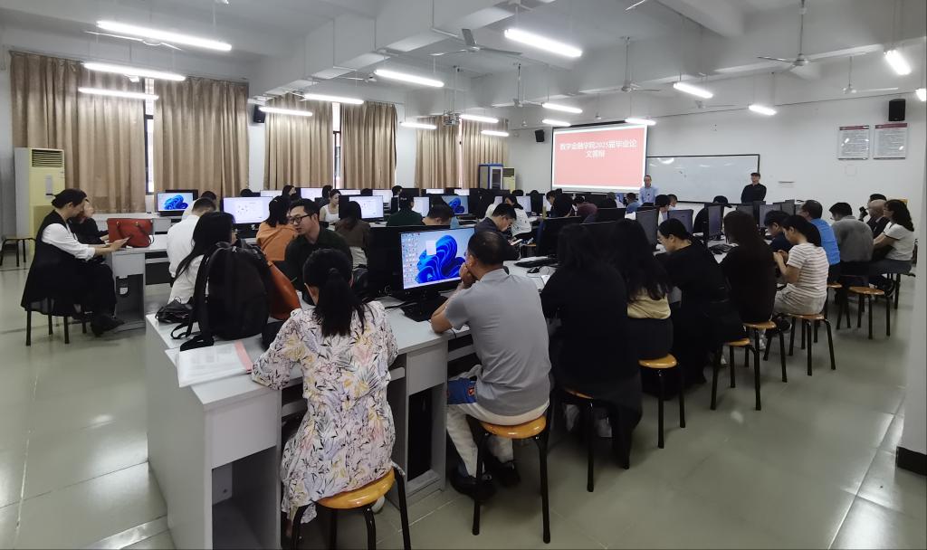 为确保答辩工作的高质量进行,数字金融学院成立答辩委员会,制定详细的答辩方案和流程,明确各环节的工作要求和时间节点。同时,学院邀请了校内外金融领域的18位专家和企业高管融入到答辩组担任答辩专家之一,确保答辩评审的专业性和权威性,并在答辩前组织校内外专家在厚德楼B203召开2025届数字金融学院毕业论文答辩工作会议。