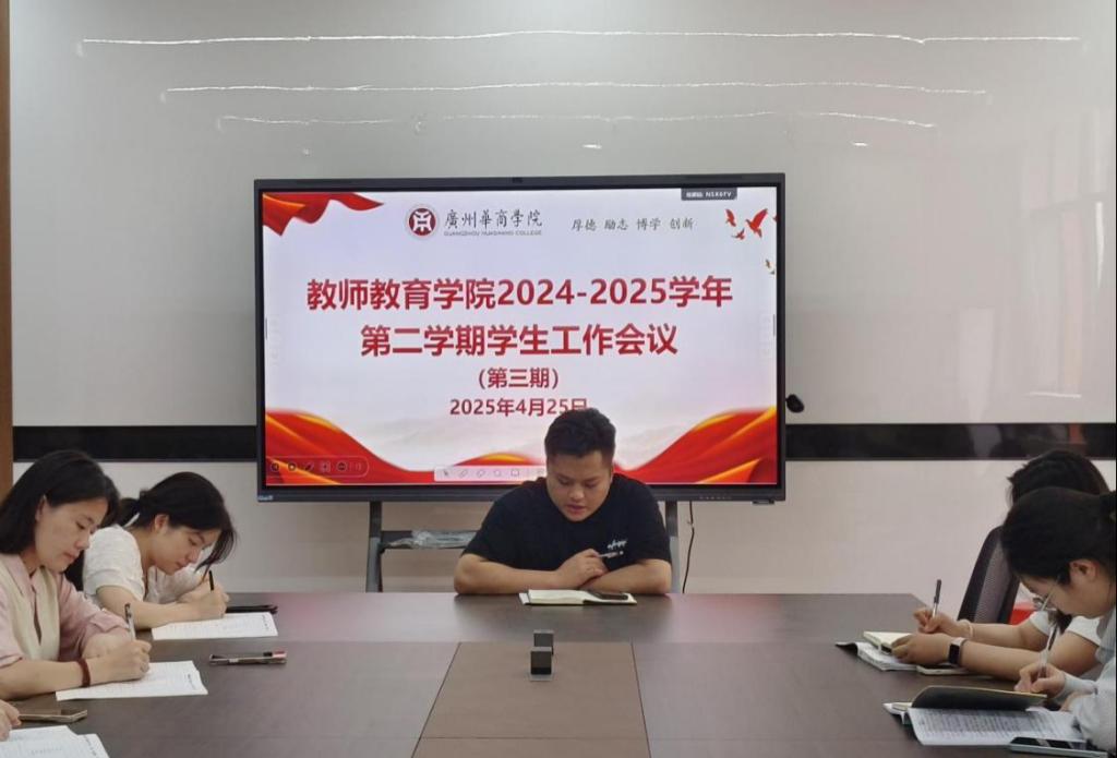 为全面贯彻落实本科教学工作合格评估相关要求,切实提升辅导员队伍专业化建设水平,教师教育学院学生工作办公室于2025年4月24日在创新楼会议室组织召开第三期学生工作专题会议。会议采用线上线下相结合的形式,肇庆校区辅导员通过腾讯会议线上参会。本次会议由学生工作办公室副主任江庆基主持,重点围绕心理健康教育、学风建设、假期安全教育及合格评估准备工作等核心议题进行专题部署。