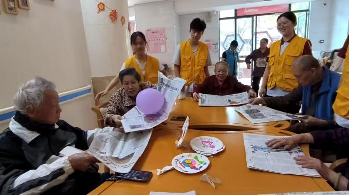 为了积极响应习近平总书记关于弘扬尊老敬老传统美德,进一步发挥好青年群体的力量,不断促进代际交流,丰富社区长者的精神文化生活,传承尊老爱老的中华传统美德。2025年4月7日和14日,广州华商学院党委宣传部联合教师教育学院与健康医学院开展“艺”缕阳光常态化志愿服务活动。本次活动围绕艾草锤制作活动、盘子绘画活动以及陪伴老人进行报纸传气球小游戏三个部分展开。