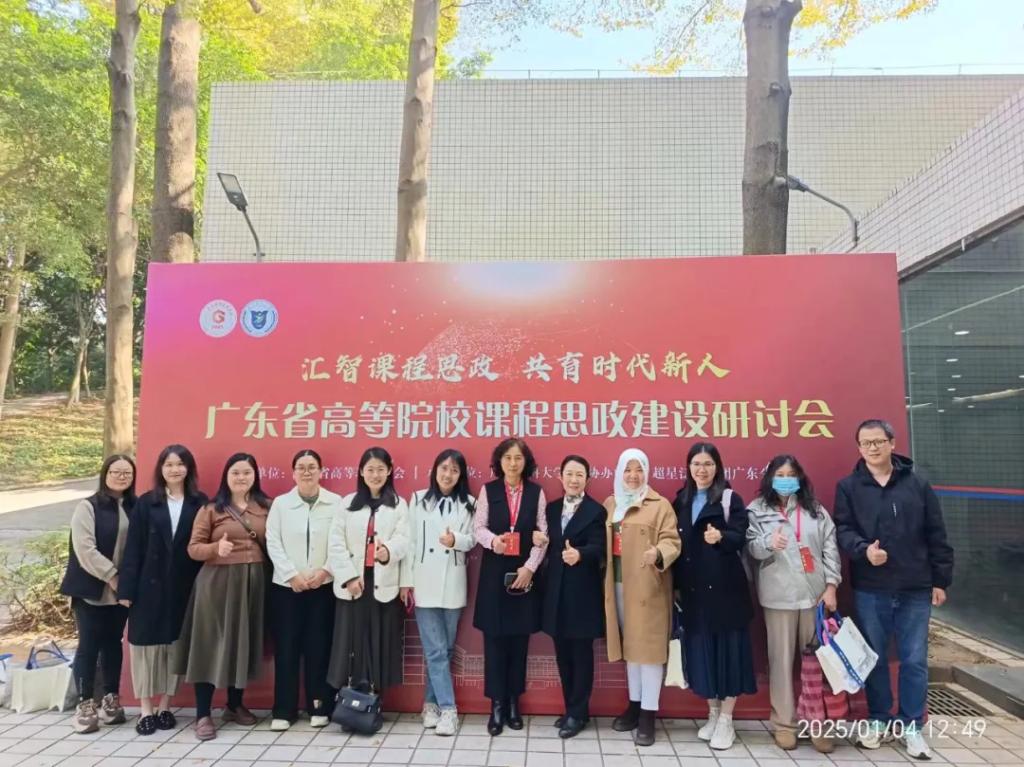 2025年1月4日,在广州华商学院教师发展中心的安排下,数字金融学院院长助理荣佳老师、列尧鑫老师以及本校十余名老师前往广东药科大学大学城校园国际会议中心参加广东省高等教育学会主办的广东省高等院校课程思政建设研讨会。研讨会由广东药科大学承办,超星泛雅集团广东分公司协办,以“汇智课程思政,共育时代新人”为主题,旨在深入探讨课程思政教学的创新与发展,共同推动高校课程思政建设迈向新台阶。