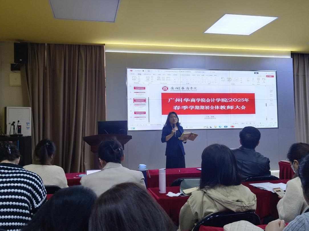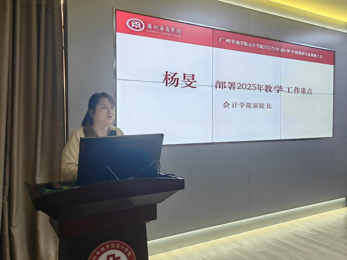 杨旻副院长从合格评估的要求出发,对2025年春季学期期初教学工作进行了详细部署。她对期初教学工作提出了明确要求,强调教师必须严格遵守教学规范,认真备课,精心授课,不断优化教学效果。对试卷检查及归档等期初教学检查、2025年人才培养方案修订与专家论证、课程建设、教材建设等工作进行了周密部署。