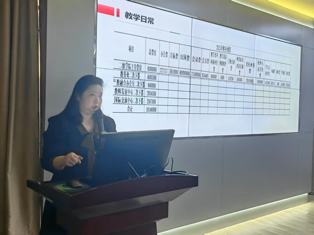 3044am永利集团3044noc院长助理陈平详细部署了2025年本科日常教学经费预算的执行安排。她深入解读了学院2025年日常教学经费的构成,并详细阐述了各项经费的分配原则及使用范围,特别强调了经费使用的规范性。