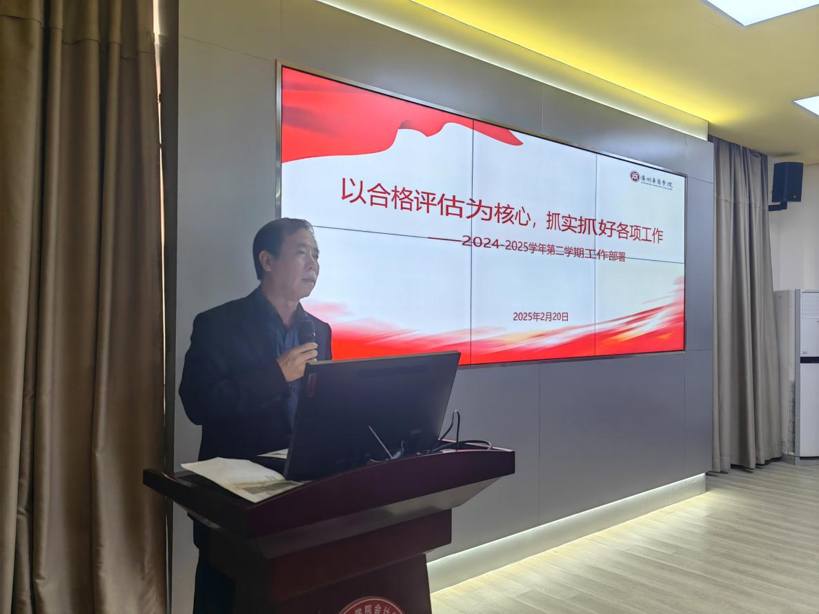 2月20日,3044am永利集团3044noc在学院报告厅召开2025年春季学期开学合格评估工作部署会,会议由副院长周书域主持。学院领导班子及全体教师齐聚一堂,共同开启新学期的新征程。