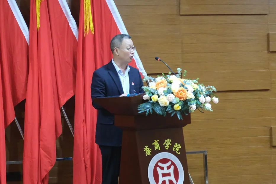 党委委员、副校长范忠宝宣读《关于同意召开中国共产党广州华商学院教师教育学院委员会第一次党员大会的批复》文件。