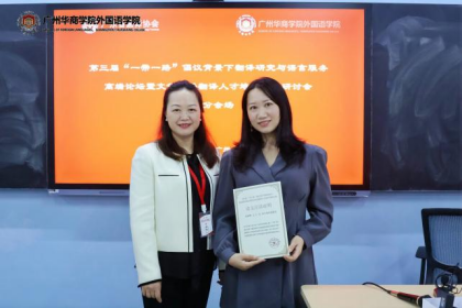 闭幕式上,陈副会长还对本次论坛的承担单位广州华商学院外国语学院以及所有协办单位细致周到的安排和高质量的服务工作表示衷心的感谢。她表示,本次研讨会能够成为一场高品位的学术盛宴,离不开广州华商学院各级领导与各方面的大力支持,和论坛会务组及广州华商学院外国语学院志愿者服务团队的默默付出和辛勤汗水。