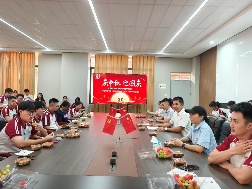 金风送爽,丹桂飘香。为庆祝中华人民共和国成立76周年与中秋佳节,将学校的温暖传递给每一位留校学子,10月1日下午,广州华商学院文学院在创新楼501办公室举办国庆中秋“双节”留校学生茶话会。文学院党委副书记郭堪通,学生工作办公室主任王桂华,文学院团委书记王怡荻以及辅导员代表杨丽根老师与90余名留校学生欢聚一堂,共叙师生情谊,同庆佳节良辰。