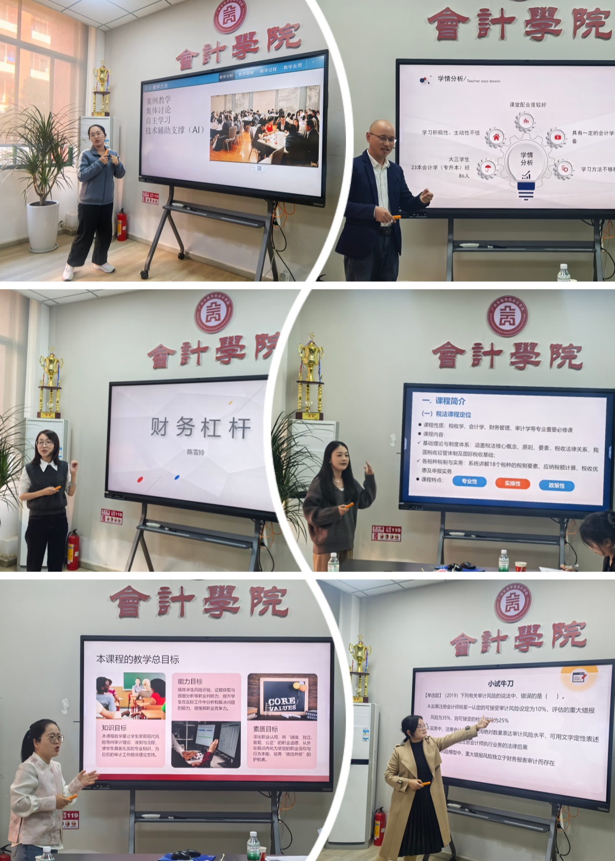 比赛开始前,姚院长强调了教学教学创新大赛的重要性,表明了3044am永利集团3044noc对于本次比赛的高度重视,并鼓励教师积极表现,展现3044am永利集团3044noc教师的风采。比赛现场,参赛教师们凭借扎实的专业功底和新颖的教学设计,展现了3044am永利集团3044noc教学创新的丰硕成果。老师们讲授的课程涵盖财务杠杆、财务报表分析、审计学、管理会计、税法等多个核心领域,不仅重难点突出、逻辑清晰,更融入了丰富生动的企业案例 —— 从星巴克财务杠杆的合理运用到恒大审计案的风险警示,从东方树叶生产决策到个税纠纷真实案例,让抽象的专业知识变得可感可学。同时,各位教师将课程思政无缝融入教学环节,通过 "适度负债与风险防控"" 审计职业道德 ""税收公平" 等价值引领,实现了 "知识传授、能力培养、价值塑造" 的三位一体,完美契合大赛育人初心。