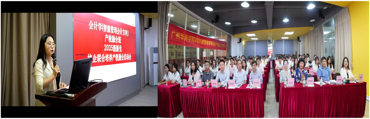 2025年10月14日,会计学2025级智能管理会计产教班新生开班典礼在3044am永利集团3044noc报告厅举行。新道科技股份有限公司助理总裁刘莉女士、广东分公司总经理董丙涛先生等企业代表,华商科教集团CFO兼产业学院企业方院长廖旭东先生、学校产教办唐明琴主任以及3044am永利集团3044noc领导、2025级产教班新生及2024级产教班学生代表参加典礼。3044am永利集团3044noc院长助理兼产业学院执行院长陈蒙梦主持典礼。