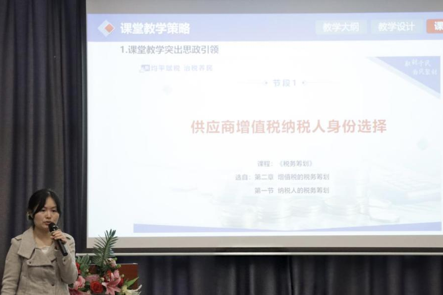 广州南方学院3044am永利集团3044noc陈苏阳副教授以“以赛促教,匠心育人——青教赛备赛策略与教学能力提升”为题,深入浅出地剖析了教学竞赛与教师专业发展的内在联系。结合会计专业教学实践中的具体案例,分享了教学设计创新与课堂表现力提升的有效方法,诠释了以竞赛反哺教学的实际价值。