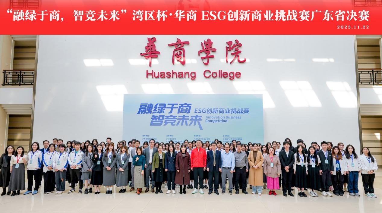 "融绿于商,智竞未来"湾区杯·华商ESG创新商业挑战赛广东省决赛于11月22日在广州华商学院广州校区圆满落幕。本次大赛同时为学校“一院一创、一院一赛”创新创业系列活动的省级实践。这场赛事汇聚了来自广东省多所高校的21支精英团队,以青年智慧赋能ESG实践,为历时月余的竞技画上句号。