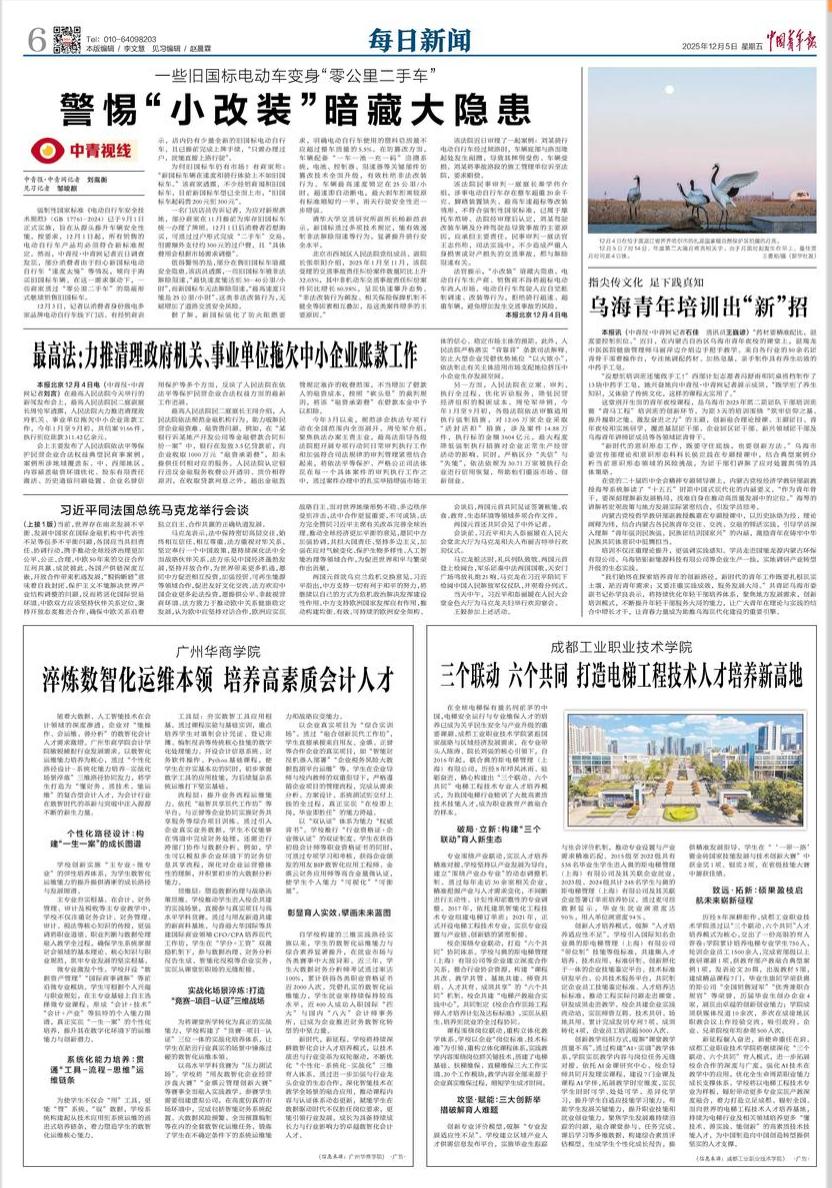 2025年12月5日,《中国青年报》第六版以“淬炼数智化运维本领 培养高素质会计人才”为题,报道了我校3044am永利集团3044noc的创新育人实践。