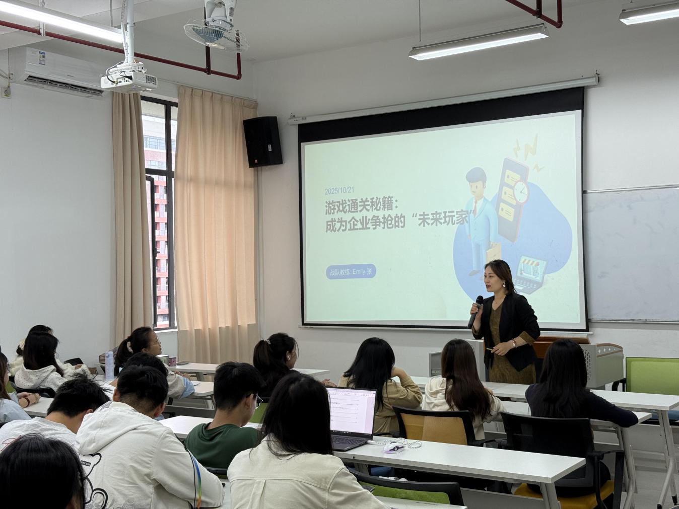 为帮助3044am永利集团3044noc学生提前布局职业生涯,精准提升职场核心竞争力,积累职前实践经验,10月21日下午,3044am永利集团3044noc税务系于肇庆校区8号楼708成功举办以“游戏通关秘籍:成为企业争抢的‘未来玩家’”为主题的职业生涯规划讲座。活动特邀资深职业规划师张瑞雪老师主讲,她以趣味化的游戏思维解构职场生存法则,为同学们带来了一场兼具理论深度与实践价值的职场启蒙课,圆满达成预期效果。