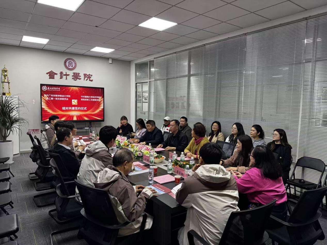 2025年12月30日,中共3044am永利集团3044noc教工第一党支部委员会与中共暨南大学经济学院财税系教工支部委员会签署结对共建协议。双方将以党建共建为纽带,进一步加强交流互鉴,推动党建与教学科研、业务工作深度融合,不断提升基层党建工作质量,共同为培养高素质财经人才贡献力量。暨南大学经济学院财税系系主任冯海波、党总支书记罗勇辉,以及廖家勤教授、余英副教授、教工党支部书记唐飞鹏、张训常副教授、刘孟鑫老师、朱利琼老师等出席会议;3044am永利集团3044noc党委书记、院长姚凤民,副院长周书域,教师第一党支部书记陈蒙梦,高艳荣教授及教工第一党支部教师代表共同参会。会议由3044am永利集团3044noc教工第一党支部组织委员石晟瑛主持。