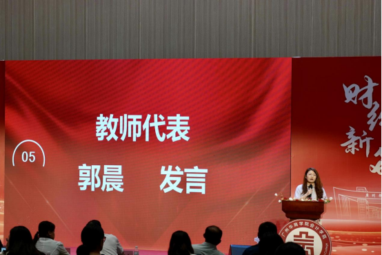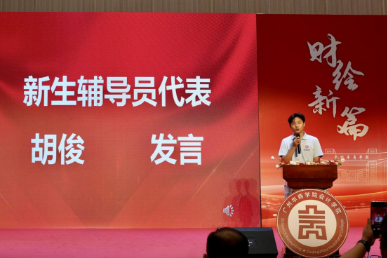 紧接着,教师代表郭晨老师结合自身教学经验,以“成长关键词”为核心分享:“专业打底”是根本,即便智能技术普及,会计基础、财务管理等核心知识仍是竞争力;“拥抱智能”是方向,学院已更新财务大数据分析、智能会计系统应用等课程,建议新生多熟悉软件逻辑与智能核查方法;“湾区借力+勇于试错”是路径,鼓励大家依托大湾区财会产业优势,通过实习、实践明确发展方向。