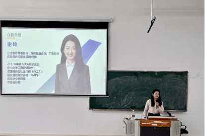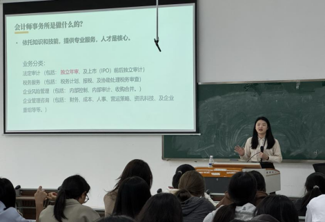 谢玲首先为同学们揭开了财会与审计行业的神秘面纱。她指出,会计师事务所不仅是财会专业学生职业发展的优质起点,更是培养专业能力、拓展职业视野、锤炼综合素质的“练兵场”。她详细介绍了会计师事务所的核心业务,包括法定审计、税务服务、企业风险管理、企业管理咨询等,让同学们对行业有了更加全面、立体的认知。