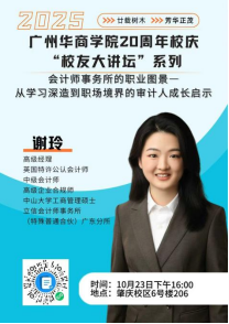 从初入职场到成为高级经理,谢玲一路稳扎稳打,从审计助理到项目主管,再到项目经理、高级项目经理,直至如今的高级经理,她凭借扎实的专业知识、出色的项目能力和优秀的职业素养,在财会与合规领域不断攀登。她的成长轨迹,是华商会计人“厚德、励志、博学、创新”精神的最佳诠释,也是每位会计专业新生可感、可学、可追的榜样。