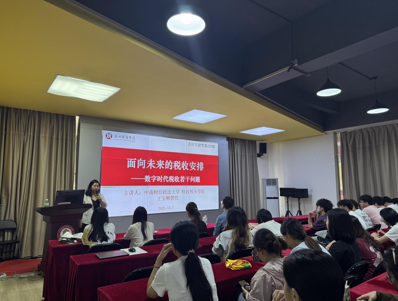 2025年11月7日,中南财经政法大学财政税务学院王宝顺教授应邀做客华商会计大讲堂,以《面向未来的税收安排——数字时代税收若干问题》为题,为3044am永利集团3044noc师生带来一场深度解析数字经济与税收变革的学术盛宴。本次讲座由会议由3044am永利集团3044noc院长助理陈平副教授主持。