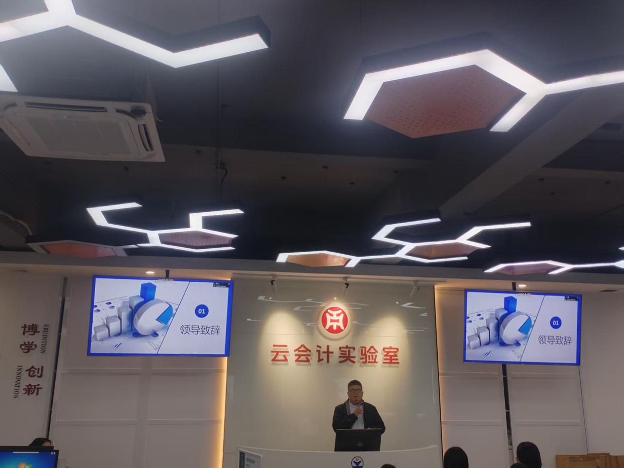 随后,郭威老师就“融智·财务云”项目进行了系统介绍。他重申,该平台以标准化、智能化、信息化为核心,融合AI技术与SaaS系统,为小微企业提供高效、精准的财务服务。郭老师强调,参与此类前沿实训,不仅有助于同学们掌握现代会计工具,更是对未来职业路径的有力铺垫。介绍完毕后,他进一步明确了本期实训的纪律要求,希望同学们严守规范,积极互动,营造专注、有序的学习氛围。