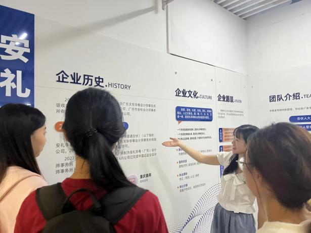 随后,业务发展部负责人程钰婷经理向师生们系统介绍了事务所的基本情况。从事务所的成立背景、组织架构到事务所的业务范围,展现出安礼华粤会计师事务所多元化、专业化的服务体系。她提到安礼华粤会计师事务所始终秉持 “专业、诚信、高效” 的服务宗旨,在行业内积累了丰富的客户资源与良好的口碑,近年来更是顺应数字化趋势,逐步推进审计工作的信息化升级。