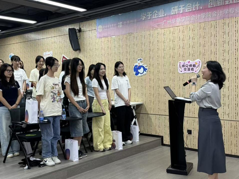 在备受期待的师兄师姐交流环节,已在集团任职的华商校友——18届的张丽蓉师姐和25届的骆浚贤师兄分享了职场经验,为学弟学妹们的未来规划提供了重要参考。