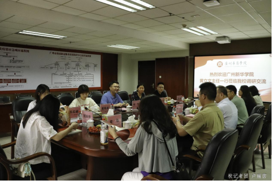5月6日下午,广州新华学院校长办公室主任黄立文一行7人莅临我校调研交流,我校校长助理、学校办公室副主任杨宪,校办各科室代表参加调研交流会。