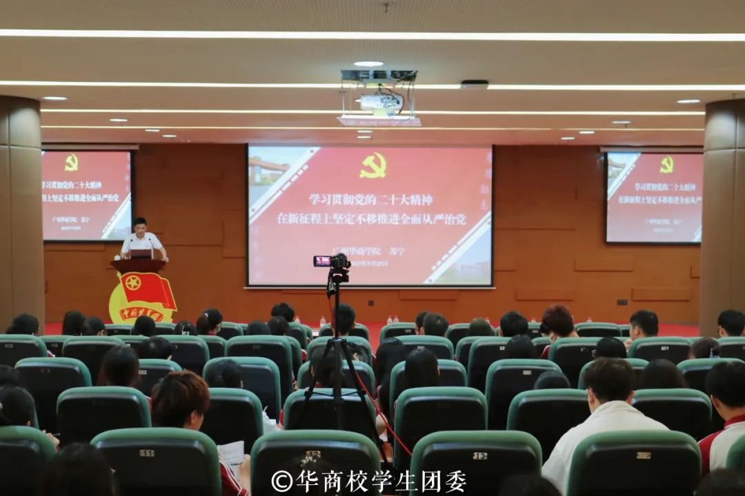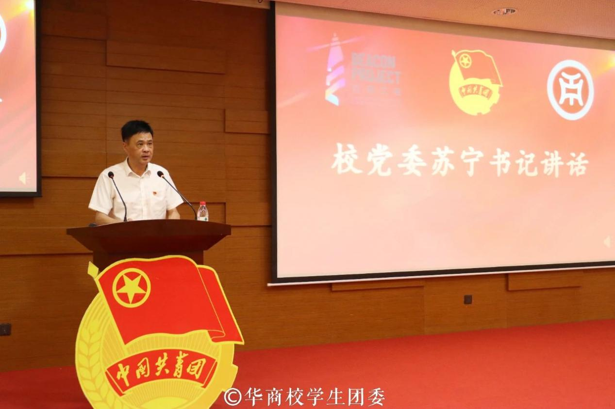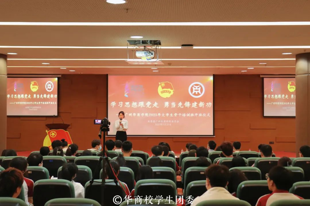 为深入学习贯彻习近平新时代中国特色社会主义思想和党的二十大精神,推动广大学生骨干明确责任与使命,用科学理论武装头脑、指导实践,帮助大学生骨干坚定跟党走的信念,成长为中国特色社会主义事业的合格建设者和可靠接班人,5月25日,“学习思想跟党走 勇当先锋建新功”广州华商学院2023年大学生骨干培训班开班仪式在图书馆报告厅举行。学校党委书记苏宁、校团委书记陈刚、各二级学院团委书记及增城、四会校区301名学生骨干线下、线上参加开班仪式。