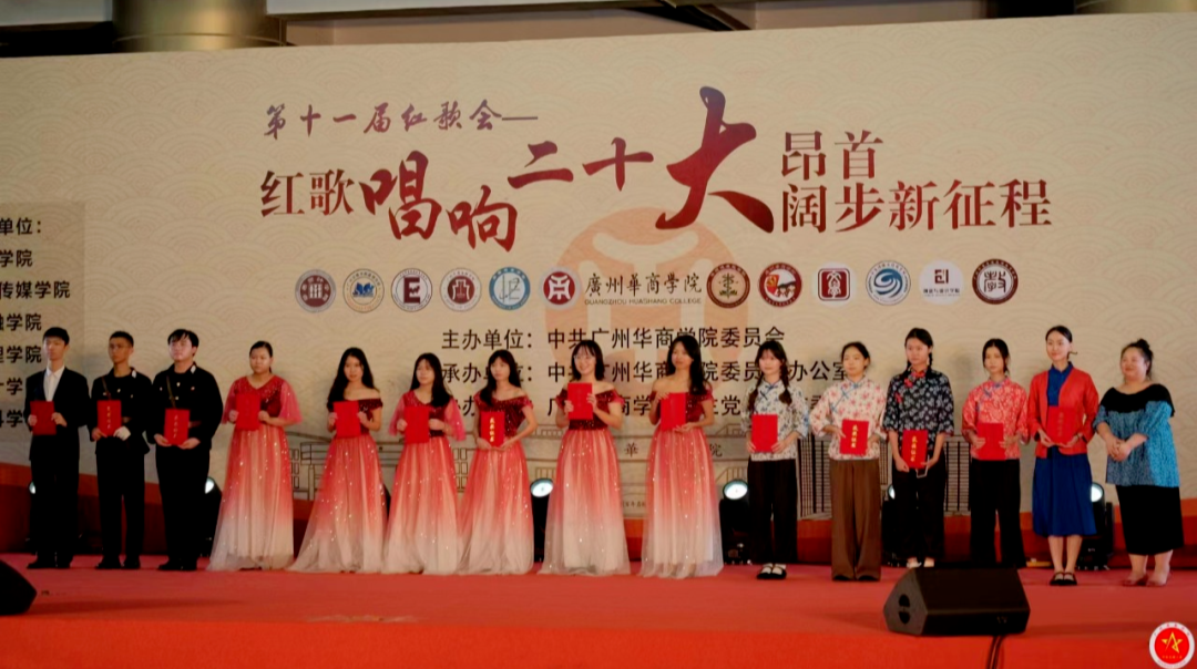 为深入学习宣传贯彻党的二十大精神,积极推进学习贯彻习近平新时代中国特色社会主义思想主题教育在校园内走深走实,热情讴歌党的丰功伟绩,抒发师生的爱党爱国情怀,2023年5月26日晚上19:00,我校于启智楼一楼举办广州华商学院“红歌唱响二十大,昂首阔步新征程”第十一届校园红歌会。