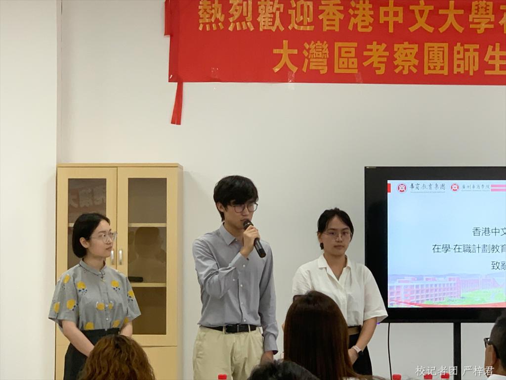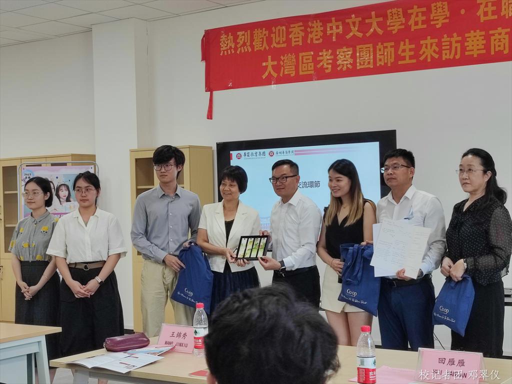 为深入了解粤港澳大湾区教育发展状况,进一步推进教育教学水平提高,实现优秀资源共享,近日,香港中文大学在学·在职计划教育部总监赖汉荣、助理总监傅贝诗、职涯组助理经理黄晓欣,香港中文大学考察团学生等一行代表团参访广州华商学院增城校区,与我校代表在创科楼进行座谈交流。广州华商学院副校长王锦秀、广州华商职业学院副校长余家军、广州华商学院国际学院院长回雁雁以及广州华商学院学生代表参加本次座谈。本次座谈由广东华商教育集团学术专员陈雯姗主持。