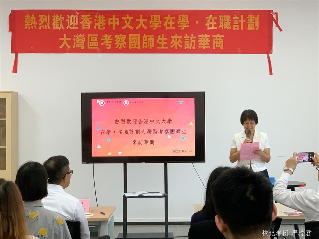 会议伊始,广州华商学院副校长王锦秀首先对香港中文大学师生的到访表示诚挚欢迎,并介绍到我校是目前粤港澳大湾区最大的一所财经特色鲜明、多学科协调发展的民办商科大学,同时简述了我校的办学规模、办学目标以及近期对外访学研学交流活动,致力于为国家,为粤港澳大湾区建设培养具有国际化创新型人才。她根据当下区域发展对人才需求旺盛的现状,表示希望能够制定相关政策来集聚人才、留住人才,也希望香港中文大学优秀毕业生能融入增城,加入共筑粤港澳大湾区的行列之中。