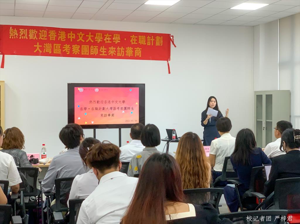 广州华商职业学院副校长余家军向港中文考察团分享粤港澳大湾区创新创业发展方向。他提到,大湾区政府高度重视青年的创新创业,华商学院创新创业孵化基地得到广州市政府的大力支持,表明本校学生在创新创业方面具有一定特色和优势。同时,学校为支持学生创新创业,已开设具有广东省一流本科水平的创业管理课程,并出台一系列政策支持学生创新创业,鼓励学生不仅注重学科竞赛,还要走出校门,增强实践能力,展现大湾区学生的风采。余家军副校长表示,港中文的学生拥有不同的文化背景,对市场的理解各不相同,他相信,在港中文学生进一步了解大湾区文化后,利用语言优势、地理优势,结合港中文优越的教学资源,作为个体必能把握大湾区,放眼全球。