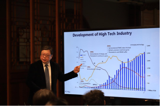 随后,美国威斯康辛大学密尔瓦基分校工业暨制造工程系科学家宫大川教授作题为《全球化背景下产学研创的态势及启示》的主旨演讲。他分别从产、学、研的角度出发,向与会人员解读了全球科技发展的态势,并强调追求创新的同时更要接地气。在产业方面,宫大川教授以历时性的角度,列举了以往各阶段的信息化和智慧化发展成果,并借用方舟投资(简称ARK)2021年和2023年双份报告,总结了数字发展的未来趋势。在学校层面,他结合了自身在美国威斯康辛大学密尔瓦基分校(University of Wisconsin-Milwaukee,简称UWM)的任教经历,分享了学校的办学特色和最新的研究成果。在研创方面,他则是以自己申报课题的亲身经历,强调了掌握其中方法论的重要性。