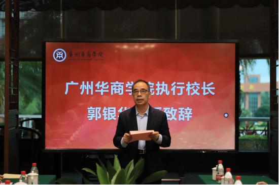 论坛伊始,广州华商学院执行校长郭银华教授为论坛开幕致辞。他指出当前教育数字化转型乃大势所趋,并强调举办此次论坛活动是为了响应国务院和教育部的号召,打破学科壁垒,形成跨学科协同发展格局,培养具有国际视野的复合型人才,进而打造华商数字化教育特色。他同时还对广州华商学院产学研的未来发展提出了美好的愿景,希望各二级学院、研究院能够借此平台加强交流合作,共同推动华商学院数字化教育转型升级,推动数字科技产学研一体化、高端化、特色化发展,助力粤港澳大湾区产业高质量发展。