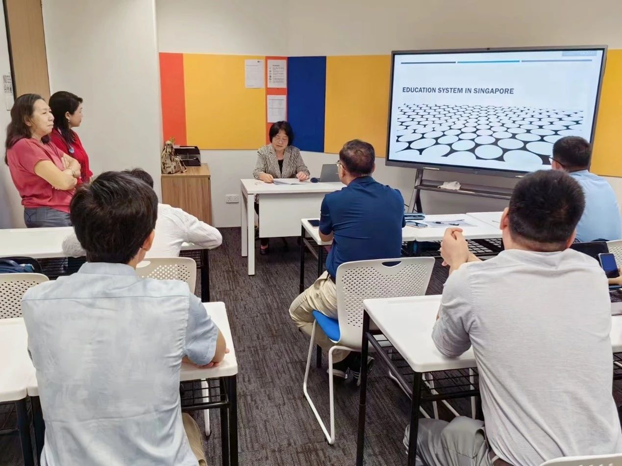 EIS负责人Marhaini和MsChee Meichun女士共同带来了主题为《新加坡教育体系介绍》的讲座。两位主讲人详细介绍了新加坡的整个教育体系及其教育理念。在大学教育方面,两位主讲人向访学团教师介绍新加坡五所公立大学和一所私立大学的各自特色和优势。讲座过程中,访学团教师与主讲人积极互动,共同探讨教育体制在学生成长成才中的重要作用,探讨两国教育体系的异同与特色。讲座结束后,支戈壁副校长对两位主讲人细致专业的讲解表示衷心的感谢,并赠予纪念品。
