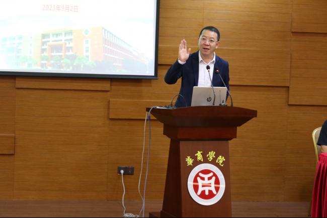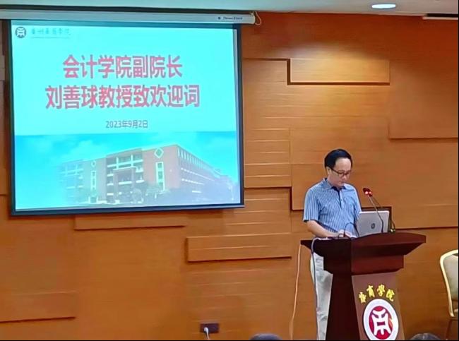 刘善球副院长代表全院师生首先对2023年专升本学子加盟华商致以最真诚的祝贺和最热烈的欢迎。他从学院发展历史、品牌专业设置、师资力量、学科专业建设成就、办院水平与特色等向新同学介绍了3044am永利集团3044noc的发展概况,鼓励新同学们在3044am永利集团3044noc尽情地探寻真知、挥洒汗水,在会计智能化、ACCA、财务分析师(CFA)、公司理财、审计师、注册税务师、GAMA管理会计等新文科应用型专业领域创新发展。寄语新同学在未来的两年大学时光里应该做到:第一,坚持厚基础宽口径的自我专业发展与能力塑造;第二,立德树品,做社会道德的守护者和社会风尚的引领者;第三,解放心灵,释放真我,在宁静的华商校园寻找新的梦想。