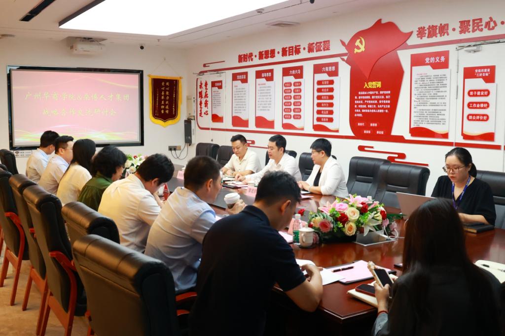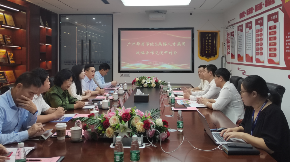 为进一步推动我校产教融合、校企合作、学生就业的高质量发展,促进教育链、人才链与产业链、创新链的有机衔接,2024年5月8日上午,广州华商学院副校长廖伊曼、校长助理黄伟新、产教融合办公室主任唐明琴、管理学院副院长廖珍杰、管理学院人力资源管理系副主任田宇以及中汇智慧云副总经理蔡朝勇一行前往深圳桑博人才集团有限公司交流研讨。
