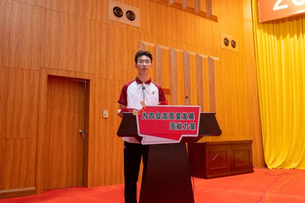 广州华商学院数据科学学院2022级计算机科学与技术专业2班的刘子皓同学发言。青年是国家的未来,民族的希望。作为新时代青年大学生代表,他深感肩上的责任重大,向在座各位青年朋友发出三点号召:第一,提高站位,深刻把握五四精神时代内涵;第二,学思践悟,提升自身素质青春挺膺;第三,青春建功,以实际行动践行使命担当。