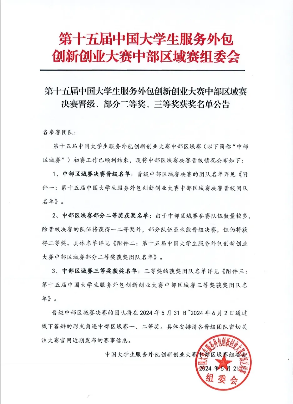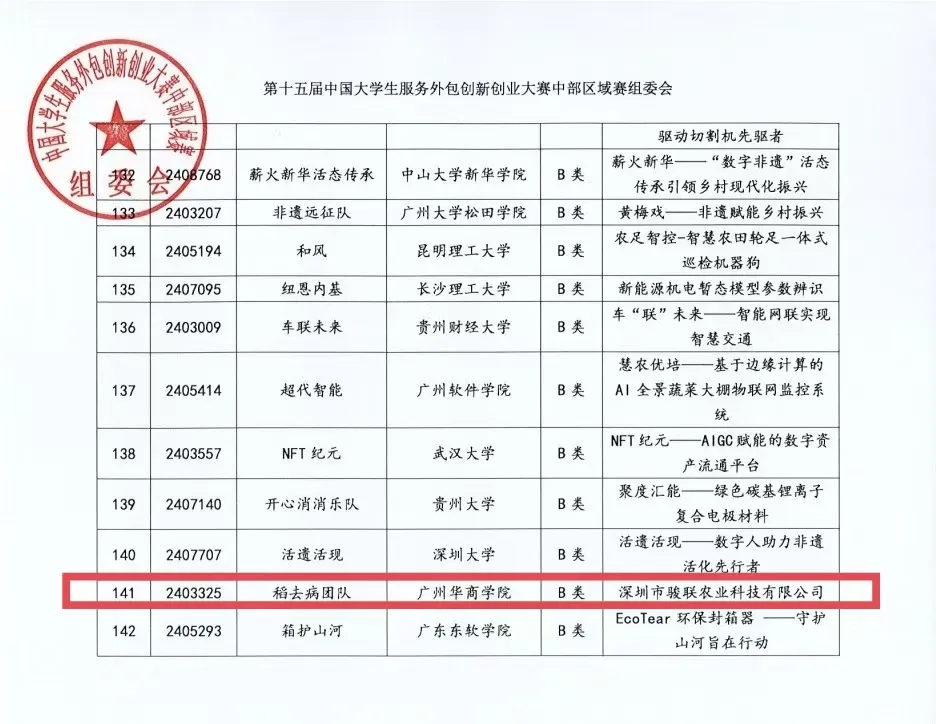 近日,第十五届中国大学生服务外包创新创业大赛中部区域赛组委会公布比赛成绩。我校“稻去病团队”在第十五届中国大学生服务外包创新创业大赛中部区域赛中斩获佳绩,获中部区域赛三等奖。