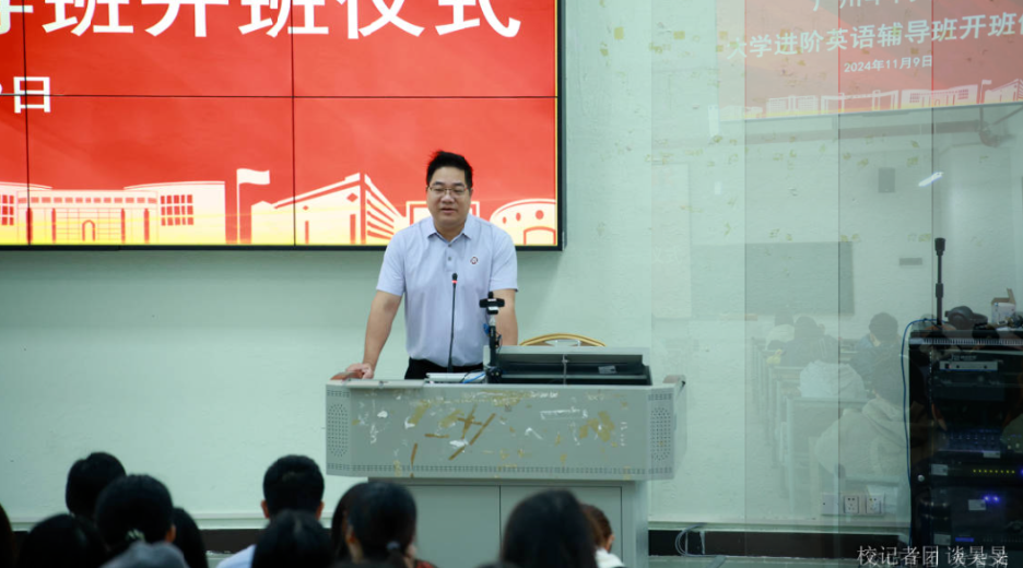 广州华商学院大学进阶英语辅导班开班仪式于2024年11月9日上午在广州校区励志楼B207举行。出席此次开班仪式的嘉宾有学校副校长许娜、学生处处长黄国富、学生处副处长马卉芳、继续教育学院院长助理钟劲康以及各二级学院辅导员代表等。开班仪式由学生处处长黄国富主持。