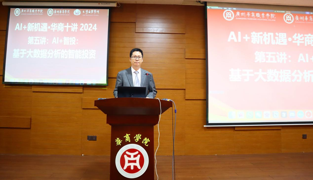 11月19日下午,华商教育集团旗下三所院校,广州华商学院、大湾区商学院、广州华商职业学院联合举办的大型系列公益讲座“AI+新机遇•华商十讲”之第五讲《Al+智投:基于大数据分析的智能投资》在广州华商学院图书馆报告厅举行。粤港澳三地近1300人线上线下参加此次活动。