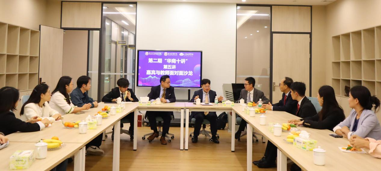 易方资本的创办人及投资总监王华先生为本次讲座的主讲人。易方资本人工智能研究员王遨研先生,中汇集团投融资与投资者关系部总监兼大湾区商学院代表印国庭总监,大湾区商学院课程及项目主任许荣辕先生,广州华商学院校长助理张军教授,国际交流与合作处王文忠处长,数字金融学院张纯威副院长、李明杰副院长,广州华商职业学院国际教育学院钱芳院长及师生代表们参加了现场活动。