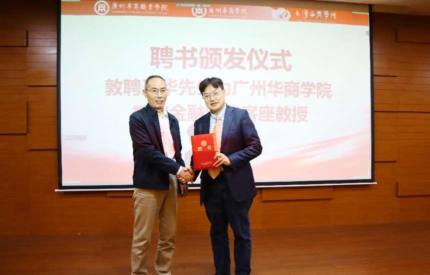讲座现场,我校举行客座教授聘任仪式,敦聘王华先生为我校客座教授。王华先生在金融科技领域拥有卓越的成就,他的加入将为我校的学科建设、人才培养带来新的活力,将有助于推动我校在金融科技领域的教学和研究工作迈向更高水平。