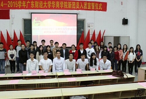 2014年11月12日晚上,广东财经大学华商学院新团员入团宣誓仪式在励志楼B307顺利举行,出席本次活动的有院团委黄剑年老师、院团委书记助理周大棱同志、院团委常委陈丽昆同志、院学生团委劳丽贞书记、院学生团委肖昱东副书记和院学生团委万茂芸副书记等。